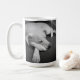 Schwarz-Weiß-Foto eines wunderschönen Hundeschlafe Kaffeetasse