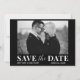 Moderne Trendy Save the Date Schwarz/Weiß Fotokarte mit Blockskript und Kalligraphie-Skriptkombination.