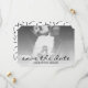 Moderne Save the Date Karte in minimalistischem Design. Fügen Sie einfach ein Foto von Ihnen und Ihrem Partner hinzu. Save the Date ist in einem schönen Skript als Foto-Overlay geschrieben. Die Rückseite weist ein elegantes Schwarzweiß-Muster von Sprinklen auf.