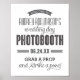 Der Poster-Druck von 8 x 10" Foto kann mit Braut- und Bräutigamen und Hochzeitsterminstext personalisiert werden. Das Unterschreiben lautet: "Herzlich willkommen zum Hochzeitstag-Fotostand von Braut und Groom, Hochzeitstag (xx.xx.xx), schnappen Sie sich einen Requisiten und schlagen Sie eine Pose!". Schwarz, Holzkohle, Grau und Weiß.