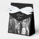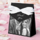 Diese schwarzen Dankeschön-Schachteln verfügen über ein klassisches Schwarz-Weiß-Foto des glücklichen Paares und bedanken sich in eleganter Weiß-Schrift. Um den Text auf beiden Seiten zu bearbeiten und das Foto zu ändern, klicken Sie auf die Schaltfläche Personalisieren.