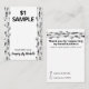 Wenn Sie nach einer einfachen Möglichkeit suchen, Ihre Seifenproben anzuzeigen, und Sie nach einem knusprigen und sauberen Design suchen, dann ist diese Schwarz-Weiß-Karte eine großartige Möglichkeit, Ihre handgefertigten Seifen potenziellen Kunden an Ihrem Marktstand vorzuführen. Das Design hat eine vertikale Kette, Herz- und Blattdesign. Um diese Karte zu verwenden, schneiden Sie die vertikalen Linien in der Kartenmitte vorsichtig mit einem Blade und Lineal ab, ziehen Sie dann Ihre Seifenprobe durch und behielt sie mit doppelseitigem Klebeband auf der Rückseite.