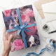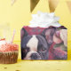 Niedliches Schwarz-Weiß-Bulldoggen-Verpackungspapier. Schöne süße Rosa und violette Blumen und Franzosen! Geschenkpackung ist perfekt für Feiertage, Geburtstage, Valentinstag, Jubiläum oder Weihnachten für Liebhaber von Haustieren oder Hunden.