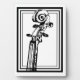Schwarz-Weiß-Design einer Geigenrolle, gerahmt von schwarzen Konturen. Für Geiger oder Musikliebhaber!