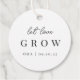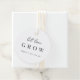 Elegante typografische Gevor-Tags mit "lass Liebe wachsen" in handgeschriebenen Skripten und klassischen Serifenschriften. Ideal für Pflanze, Samen oder Sukkulenten für Hochzeiten oder Brautpartys. Farbe: Schwarz/Weiß