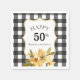 Diese Party-Servietten werden auf Ihrem Tisch fabelhaft aussehen. Dieses Design zeichnet sich durch einen karierten, schwarz-weißen Büffel-Hintergrund, gelbe Aquarellfarben-Blume und benutzerdefinierte Typografie aus.