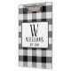 Schwarz-Weiß-Gingham-Monogram-Familienname Jahr-Clip-Board