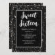 Schwarz-Weiß-Glitzern Sweet 16 elegante Schrift Einladung