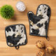 Schwarz-weiß Gold Cowhide Ofenhandschuh & Topflappen-Set