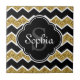 Schwarz-weiß Gold Glitzer Zickzack Muster Fliese