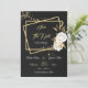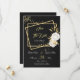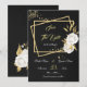Romantische, weiße Blume und goldene Blätter auf goldfarbenen Rechtecken, schwarz Save the Date Einladung Die Details des Glitzer werden simuliert