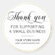 Schwarz-weiß Gold Small Business Vielen Dank Runder Aufkleber