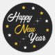 Schwarz, Weiß und Gold Stern glücklich Neujahr Runde Aufkleber. Ideal für einen Silvester / neue Jahre Tag oder Gastgeschenk.