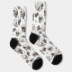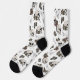 Diese lustigen femininen gotischen Socken werden von Nathalie Portet in schwarzer Tinte gezeichnet, mit skurrilen Schädeln und blütenrosa und cremefarbenen Rose und Spinnennetz auf weißem Hintergrund.