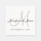 Elegante Minimale Schwarz Weiß Grau Monogramm Skript Hochzeitspapierservietten für Hochzeiten, Babypartys, Probeessen und Hochzeitstage. Design von Elke Clarke ©. Verfügbar bei www/zazzle.com/monogramgallery*. Klassische Skript-Schriftarten. Anpassen mit Ihrem Braut- und Bräutigamnamen, Hochzeitsdatum und Hochzeitsfarben.