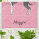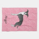 Schwarz-Weiß-Greyhound auf rosa Herzen Geschirrtuch