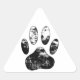 Schwarz-Weiß-Grunge Dog Paw Print Dreieckiger Aufkleber
