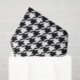 Dieses Papiertaschentuch weist ein klassisches Schwarz-Weiß-Hahnentrittmuster auf.