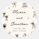 Personalisierter Schwarz-Weiß-Drawn Quirky Wedding Classic Round Sticker verleiht Ihrem besonderen Tag Charme. Diese Hochzeitsaufkleber eignen sich hervorragend zum Versiegeln von Umschlägen, zum Dekorieren von Gefälligkeiten oder zum Hinzufügen einer individuellen Touch. Mit zeitlosem Hochzeitstickerdesign machen sie elegante Hochzeitsaufkleber oder einzigartige Gastgeschenk Hochzeit-Aufkleber. Erstellen Sie personalisierte Gastgeschenk Hochzeit Aufkleber, um Ihre handgezeichnete Hochzeit, Quirky Hochzeit, Italienische Hochzeit, Schwarz-Weiß Hochzeit oder alte Geld Hochzeit. Ein vielseitiges Detail dafür ist auch das Brautparty-Thema.