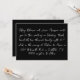 Die Einzelheiten der Hochzeit sind in einem handgeschriebenen Stil, weißer Text, aufgeführt. Die Rückseite der Einladung ist schwarz mit weißem Text für das Datum.