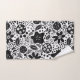 Dieses im Garten Schwarz-Weiß-Handtuch-Set hat ein Muster von Blume, Blätter und Punkten.