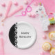Schwarz-Weiß-Happy-Geburtstagskette Pappteller