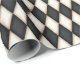 Dieses Verpackungspapier hat ein elegantes Harlequin-Muster aus schwarzen und antiken weißen Diamanten, perfekt für Kunsthandwerk und Dekoration. Diese kleine Version eignet sich für kleine bis mittelgroße Geschenkboxen und macht großartiges Dekopapier.