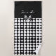 Wählen Sie dieses Black & White Schachbretts Harlequin Mad Hatter Beach Handtuch mit einem niedlichen Büffel karierten Coquette Bogen für Ihre zukünftigen Strand- oder Pooltage oder als Geschenk für einen Freund oder ein Familienmitglied.