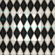 Schwarz-Weiß-Rautenmuster mit leuchtender Schattierung und Vintagem Reichtum. Diese mittelgroße Version hat Diamanten, die 3 Zoll breit und ideal für Projekte wie Röcke, Kleider, Bettwäsche, Vorhänge, etc. sind.