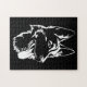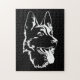 Schwarz-Weiß-Silhouette eines sitzenden deutschen Hirten
