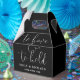 Schwarz-Weiß-Hochzeit haben und halten Geschenkschachtel
