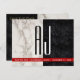 Mit dieser schlichten und eleganten Hochzeitskarte, die in einer auffallenden Schwarz-Weiß-Palette mit einem Pop kräftigen Rotes gestaltet ist, macht sie einen ersten Eindruck. Dieses einzigartige Design verbindet Eleganz mit zeitgenössischem Flair und bietet ein modernes Layout sowie ein stilvolles Monogramm mit den Initialen der beiden. Ideal für feierliche Hochzeiten, Hochzeiten in der Stadt oder in der schwarzen Krawatte, Set für eine Feier voller Stil und Persönlichkeit.