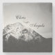 Schwarz-Weiß Hochzeit unter den Bergen. Landschaftsfoto eines schneebedeckten Berges mit Dunkelheit unten und weißer bewölkter Himmel oben. Die Namen des Ehepaares sind in schwarzem Schriftart über dem Berg am Himmel und alle Details sind in weißem Schriftart unter dem Berg. Vollständig anpassbare und personalisierbare Hochzeitsprodukte.