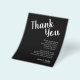 Günstige schwarze Flyer mit einem Gewicht von 4,5" x 5,6" zeichnen sich durch schicke, weiße Schriftzüge aus. Diese Orte, in denen die Dankeschön-Notizen zu finden sind, sind perfekt, um die Teller beim Hochzeitsessen oder Hochzeitsempfang auf die Probe zu setzen.