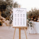 Mit diesem eleganten schwarz-weißen Sitzdiagramm, das mit raffiniertem, kursiven Schriftzeichen geschmückt ist, führen Sie die Gäste zu ihren Sitzplätzen. Diese Grafik ist perfekt für formelle und minimalistische Hochzeitsthemen und ist eine stilvolle Ergänzung zu jedem Empfang.