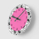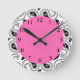 Schwarz, Weiß, Hot Pink Paisley Muster Runde Wanduhr