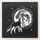 Schwarz-Weiß-Howling Husky Moon Linocut Glasuntersetzer