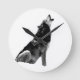 Schwarz-weiß Howling Wolf Runde Wanduhr