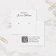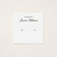 Eine minimalistische, schwarz-weiße Ohrring-Display-Karte: Nur schwarzer Text auf weißem Hintergrund, wobei die Fehlstellen durch zwei sehr kleine Kreise angezeigt werden. Der Name ist in einer eleganten Kalligraphie geschrieben. Es hat einen QR-Kabeljau auf der Rückseite, im unteren Teil, zum verlassen der Info.