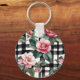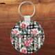 Schwarz-Weiß-Kariert mit grün-rosa Kamelien Schlüsselanhänger