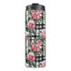 Schwarz-Weiß-Kariert mit grün-rosa Kamelien Thermosbecher