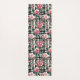 Schwarz-Weiß-Kariert mit grün-rosa Kamelien Yogamatte