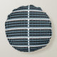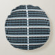 schwarz-weiß kariertes Muster mit weißem b Rundes Kissen