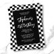 Erstellen Sie Ihre eigene Retro-Rennbahn im Schachbrettmuster Geburtstagsfeier 12x18 Einladung für sie. Passen Sie die Grafikfarben des Musters oder die Farben der rechteckigen Overlays an. Passen Sie die Stile, die Farbe und die Größe des Schriftartes je nach Bedarf an.
