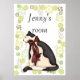 Schwarz-Weiß-Katze mit Blumenschott Poster