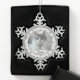 Fügen Sie Ihrem festlichen Dekor mit diesem Schwarz-Weiß-Katzenfoto-Schneeflocken-Ornament einen Hauch von klassischem Charme hinzu! Das handgezeichnete Koketten-Schleifenmuster in zeitlosem Schwarz und Weiß bringt eine elegante und moderne Note in Ihren Weihnachtsbaum. Die zarte Schneeflockenform umrahmt das Foto Ihrer Katze wunderschön und macht es zu einem perfekten Erinnerungsstück für Tierliebhaber.