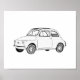 Schwarz-Weiß-klassische Fiat 500 Zeichnend Stift Poster