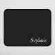 Erstellen Sie Ihre eigene schwarz-weiße Mousepad für Ihre Tochter, die wieder zur Schule geht. Fügen Sie ein fett, farbiges Monogramm zuerst, um das Design personalisiert zu machen. Eine weiße niedliche, lockige Schrift für ihren Namen über eine solide schwarze Hintergrundfarbe. Ändern Sie Stil, Größe und Farbe des Schriftartes, um ihren persönlichen Stil anzupassen.