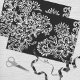 Das Design zeigt handgezeichnete abstrakte Mandala-Blume und Paisley in Weiß auf schwarzem Hintergrund.
