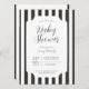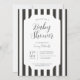 Klassische, zeitlose, schwarz-weiße Streifen Baby Show Einladung. Individuell anpassbare Schriftart Stile und Layout, mit einer einfachen gemusterten Kulisse mit sauberen, linearen vertikalen Markisenstreifen. Perfekt für unisex Baby Dusche lädt ein, Baby-Junge-Dusche einlädt ein und minimalistische Babydusche lädt ein. Monochrome Schreibwaren, vertikale Streifen-Design, Chic Baby Dusche Thema, Elegante Babydusche, Minimalistische Einladungen, Pariser Babydusche, Moderne Glam-Einladungen, Hollywood Regency Thema, Safari Babydusche, Zebra Stripe Party einladen, Whimsical Babydusche, Vintage Glam Einladungen, zeitlose Babydusche, klassische Stripe Babydusche, Circus Dusche, Circus oder Carnival. Hochwertige Babydusche, Storybook Babydusche, Kühle Strickdesign